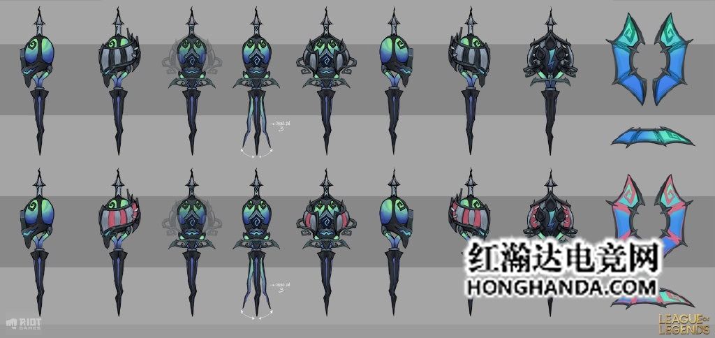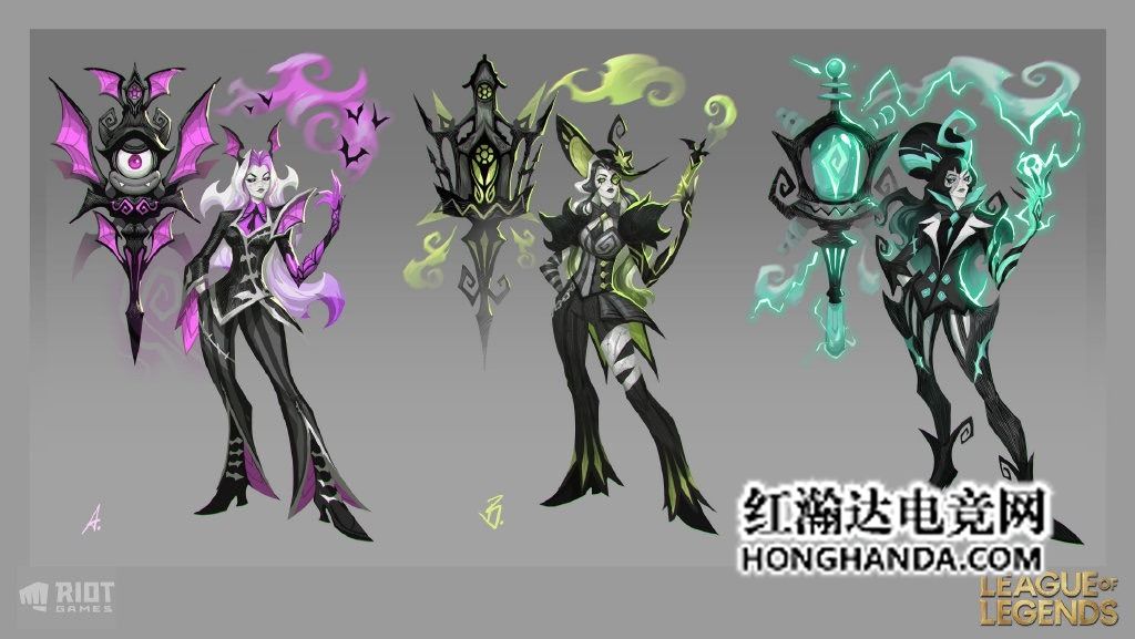英雄联盟哥特奇妙夜系列皮肤设计初稿发布,资深概念设计师Julian del Rey在A站发布了烈娜塔概念设计师稿,包括早期探索,最终定稿、回城特效、技能特效。