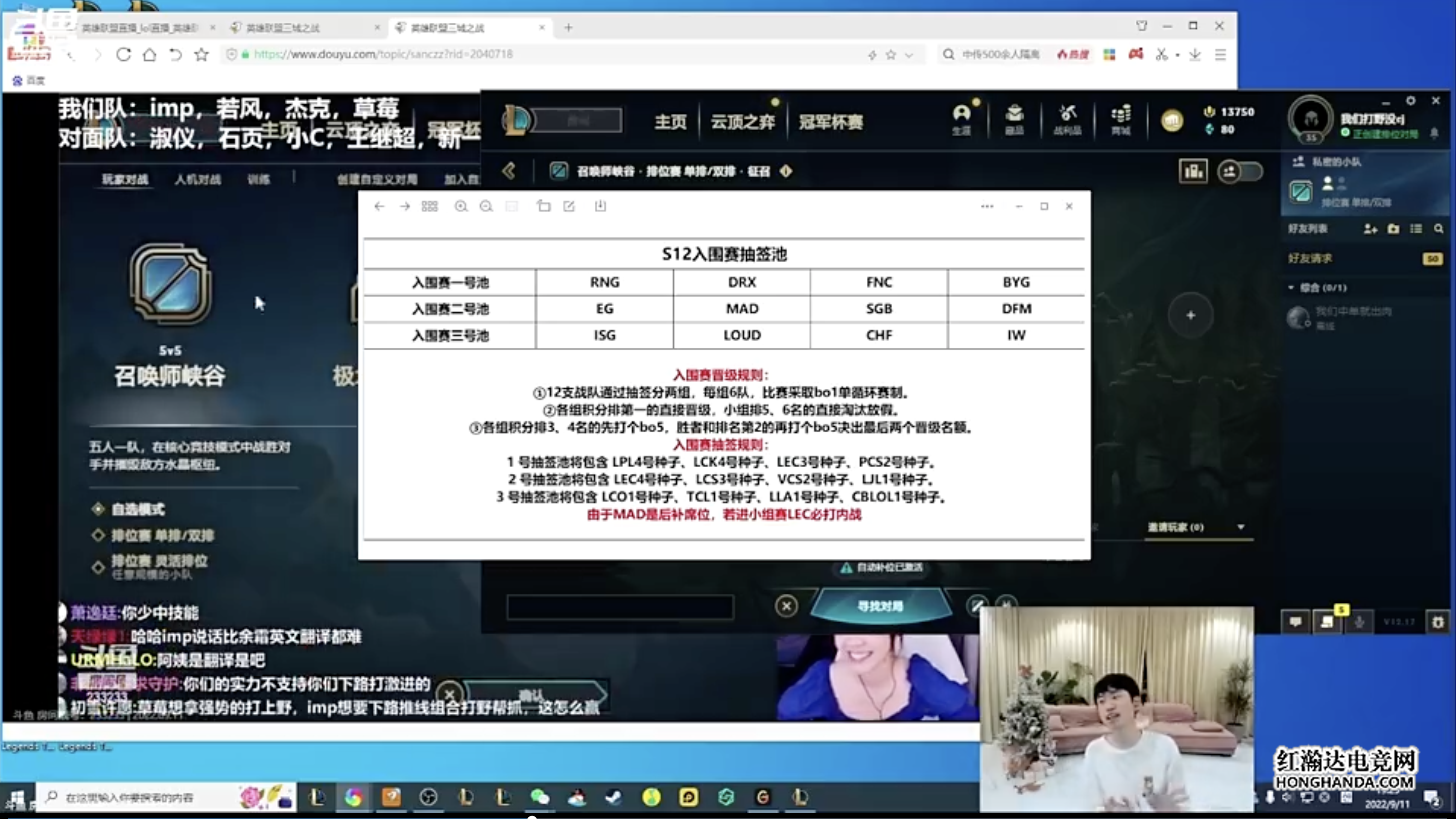 在抽签仪式开始前,Doinb连麦Xinyi讨论2022全球总决赛赛制及各大战队情况。