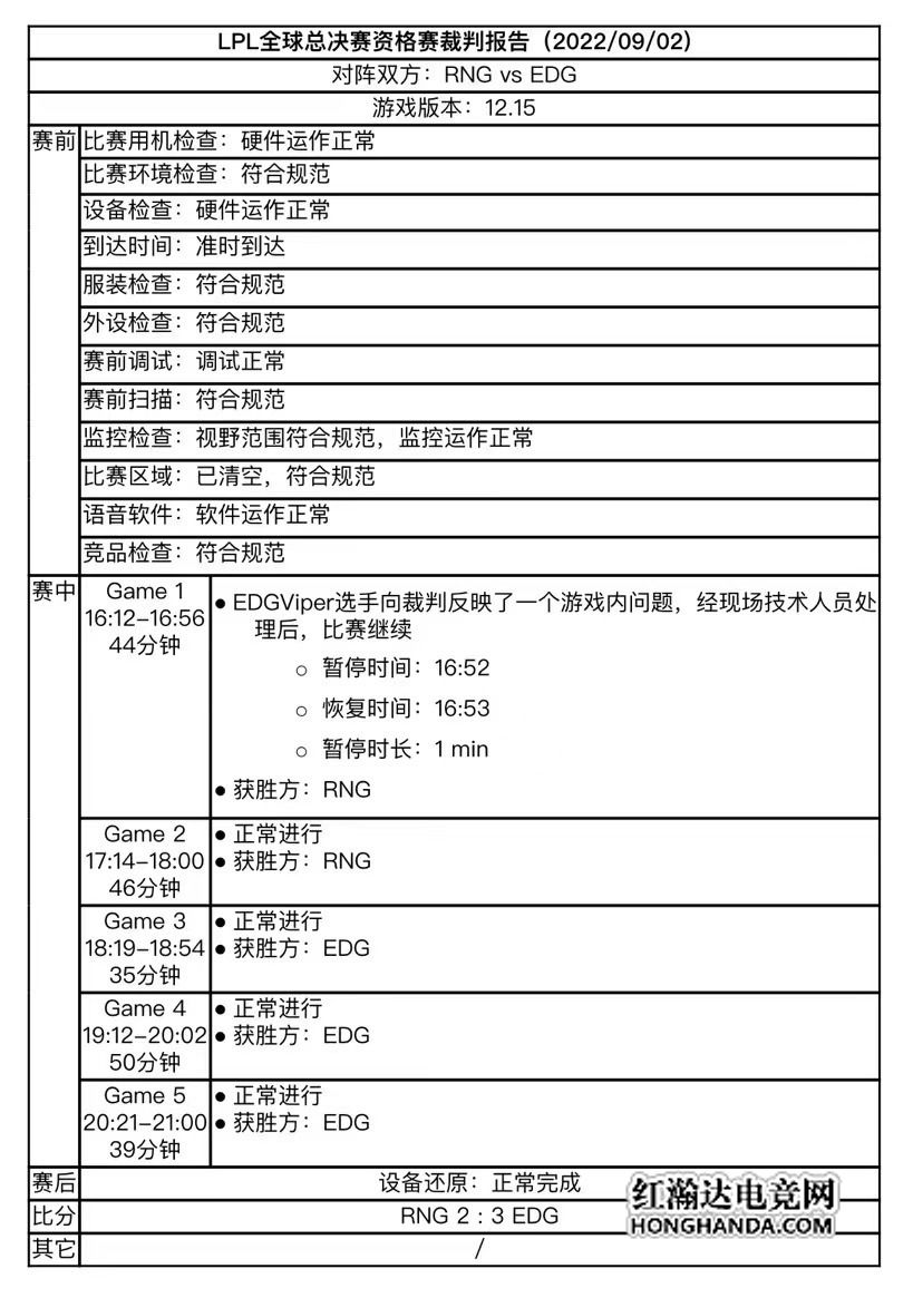9/2 RNG对阵EDG的比赛首局,Viper向裁判反映了一个游戏内问题,经现场技术人员处理后,比赛继续;