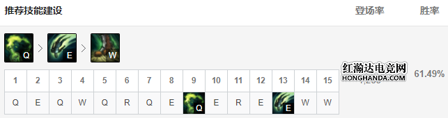 乌鸦主要Q副W,因为E技能只是带控制,并没有伤害过多的加成,所以最后在加满。