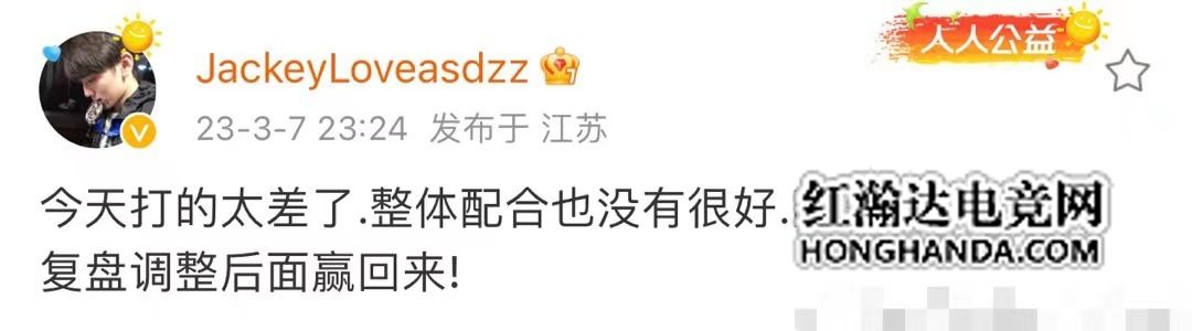 Rookie发文说道:到现在输掉的比赛输的比赛的原因很多我们一定会去改变现在的问题 不说太多下次一定赢回来。然后阿水说道:今天打的太差了.整体配合也没有很好.回去团队会好好复盘调整后面赢回来!作为不怎么发文的小天,也发文说道:今天比赛发挥的很差,团战和决策出现了非常多的问题,大家开会也说了很多问题,以后一定会一起努力打的更好。