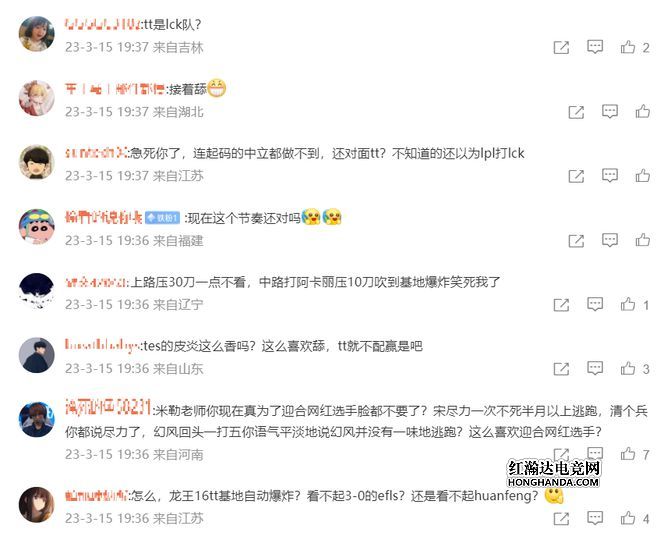 米勒个人微博下方的评论如下,不少人都在怒斥米勒:这场比赛的解说一点也不中立,TT上路压了30刀一句不提,中路Rookie压了10刀就狂吹,还以为马上TT基地要爆炸了,为什么这么看不起TT的队员呢?还是为了迎合流量,就故意狂舔TES吗?不知道的还以为TT不是LPL战队呢,以为TES在打海外战队呢!
