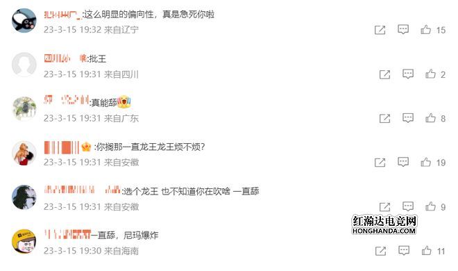 而除了米勒之外,另一位解说乘风儿也被爆破了,也是很多人在怒喷乘风儿偏向性太明显,一直龙王龙王的,真能舔。