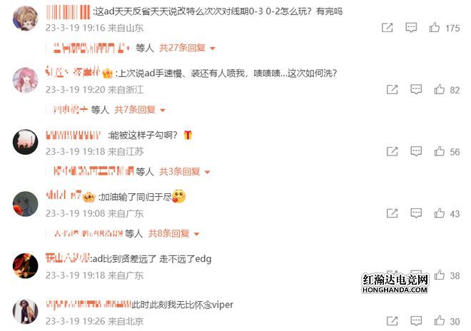 EDG官博下方的评论如下,被骂得最惨的就是AD选手leave,不少粉丝怒斥leave永远比不上Viper,每天都说要反省自己,结果每次对线都是劣势,怎么玩?也有人表示自己之前就说过leave太装了,但是被很多粉丝骂了,这次要怎么洗leave?更有人表示有这种AD,EDG走不远,自己非常想念viper。