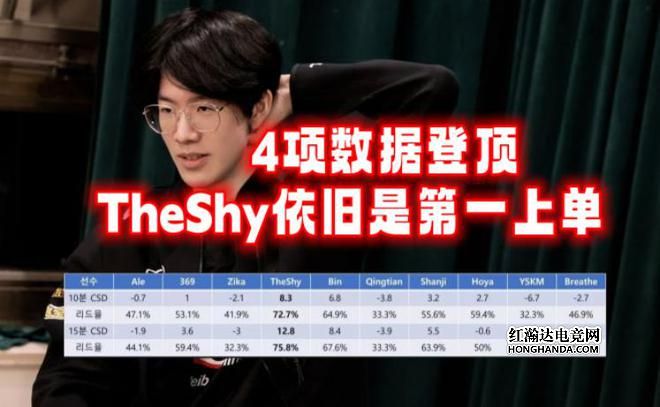 TheShy依旧是LPL第1上单!韩网统计15分钟补刀差