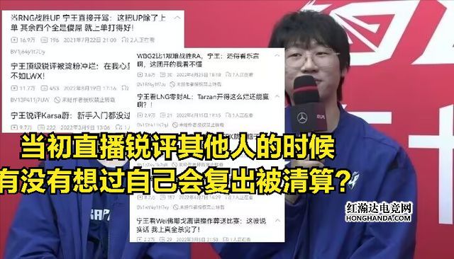 最后Ning也表示饭堂是在针对自己,只说自己的输出低不说自己的抗伤高,随后Ning也是在直播当中吹牛表示,自己的抗伤数据绝对在lpl当中排名第一,不少观众在看到Ning如此发言后,也是纷纷吐槽Ning脸皮太厚,并且拿出Ningd曾经的直播言论来,表示“自作孽不可原谅”。(可以看到Ning从打野位置一直锐评到ad,Ning直播说这些话的时候,可能也没有想到,自己还有机会复出吧?)
