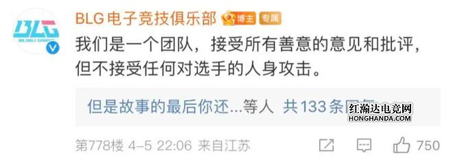 接着是BLG官博也在评论区喊话了各路网友,表示:BLG愿意接受所有善意的批评和意见,但是不接受任何对选手的人身攻击。