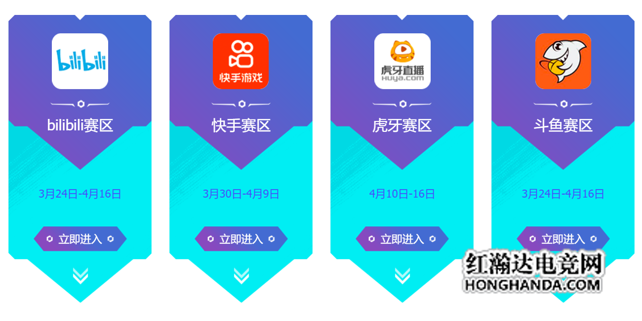 平台赛道(12个突围赛道名额):斗鱼直播3个,虎牙直播3个,快手直播3个,bilibili直播3个。