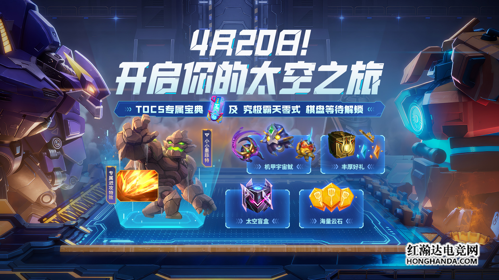 在第五届TOC云顶之弈公开赛期间,“太空之旅”活动即将开启!解锁门票参加活动,即可畅玩云顶之弈的同时解锁海量道具!完成对局可累积云石,使用云石可参与机甲召唤、太空夺宝等活动,更有机会获得全新英雄级小小英雄小小墨菲特以及解锁究极霸天零式棋盘。