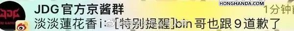 而就在近日,JDG老板蓝莲花爆料,Bin已经为垃圾话向369道歉了!