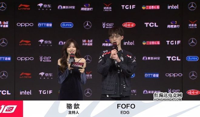赛后采访的时候,主持人骆歆先是询问他:如何面对质疑和压力?FoFo回答:我的队友都很强,我没有打好被看到,检讨自己也很正常。之后骆歆询问:这三场比赛对于自己的发挥满意吗?FoFo回答:先不说满不满意,我觉得我最近把Uzi保护得越来越好了吧。