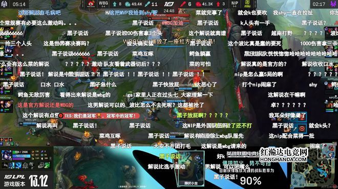 事情的经过也很简单,就是在解说这场比赛的时候,王淞确实表现得比较偏向于WBG,从BP开始就一直在吹WBG教练,然后进了游戏后特别称赞Theshy,比如说theshy鳄鱼只是往前走了一点,解说就开始狂吹theshy上脸了;再比如说theshy鳄鱼和weiwei猪妹在野区2V1,theshy鳄鱼被打出闪现,2人极限击杀Invincible贾克斯后,解说王淞狂吹瞬秒!这就是鳄鱼和猪妹!在整场比赛的过程中,弹幕基本上大部分都是在喷解说的。