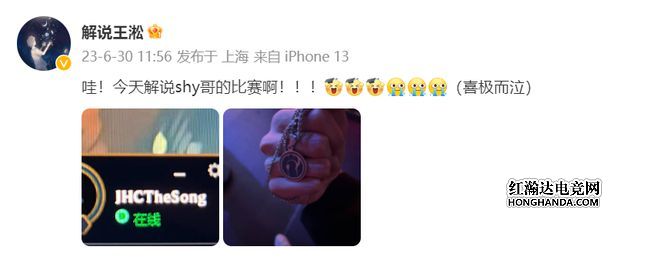 其实王淞确实是theshy粉丝,因为在解说这场比赛之前,王淞就专门发了一条微博,表示很激动要解说theshy的比赛了。同时他还晒出了自己的游戏账号,就叫做the song,甚至还晒出了IG的狗牌,的确是theshy的老粉丝了。