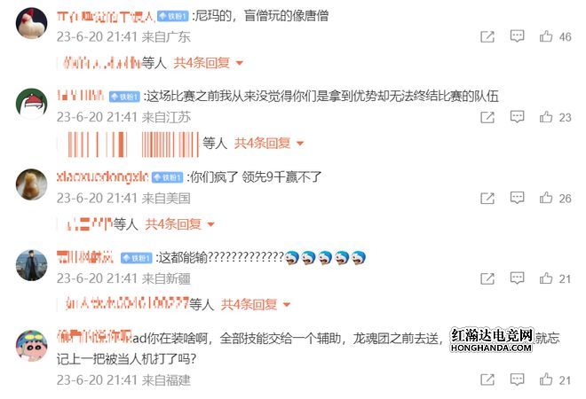 IG官博下方的评论如下,首先被骂得最惨的就是悲伤的盲僧,第二局的盲僧唯一一次找机会被lwx击杀,然后就没有尝试过任何的进攻,被粉丝嘲讽玩得像是唐僧。其次也有粉丝表示从没想过IG会成为拿到优势却无法终结比赛的队伍,领先了8K多都赢不了,这都能输的吗?更有粉丝怒斥AD小月季,表示他在龙魂团之前送了,才导致了队伍被翻盘,明明第一局小月季还被打成了人机,怎么第二局就装起来了?