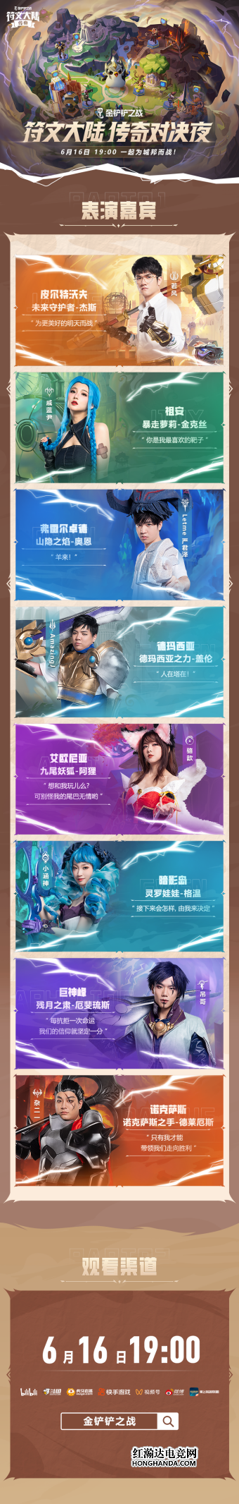 除此之外,金铲铲之战还为弈士们准备了新赛季特别节目“符文大陆传奇对决夜”,若风、小戚、骆歆、Letme、AmazingJ、吊哥、小涵神、杂二一等多位人气大神将分别代表各自城邦展开激烈对战,大家还在纠结新赛季玩什么阵容吗?6月16日19点,锁定金铲铲之战官方直播间,快来一起来看看新赛季的上分思路吧。