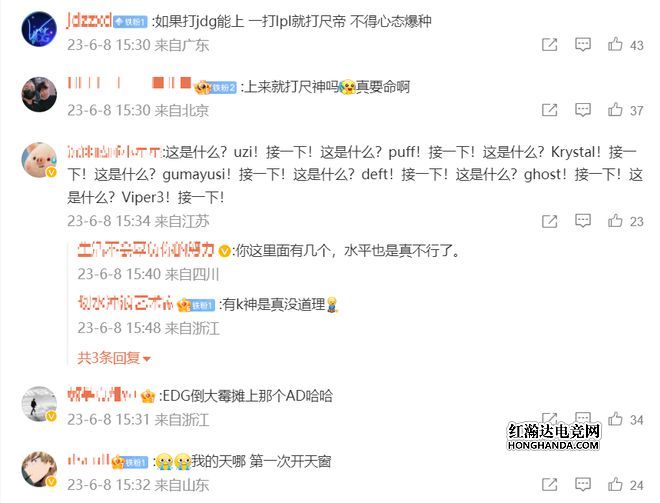 在评论区,不少粉丝也担心下一场EDG要迎战JDG,JDG本身就实力强大,下路还是ruler,如果EDG在下一场首发二队的AD选手来打Ruler,新人可能要压力和心态都爆炸了。也有粉丝希望EDG可以考虑Uzi、puff、水晶哥、gumayusi、deft、ghost、viper等等选手。还有粉丝表示EDG摊上leave这种AD,真的倒大霉了。