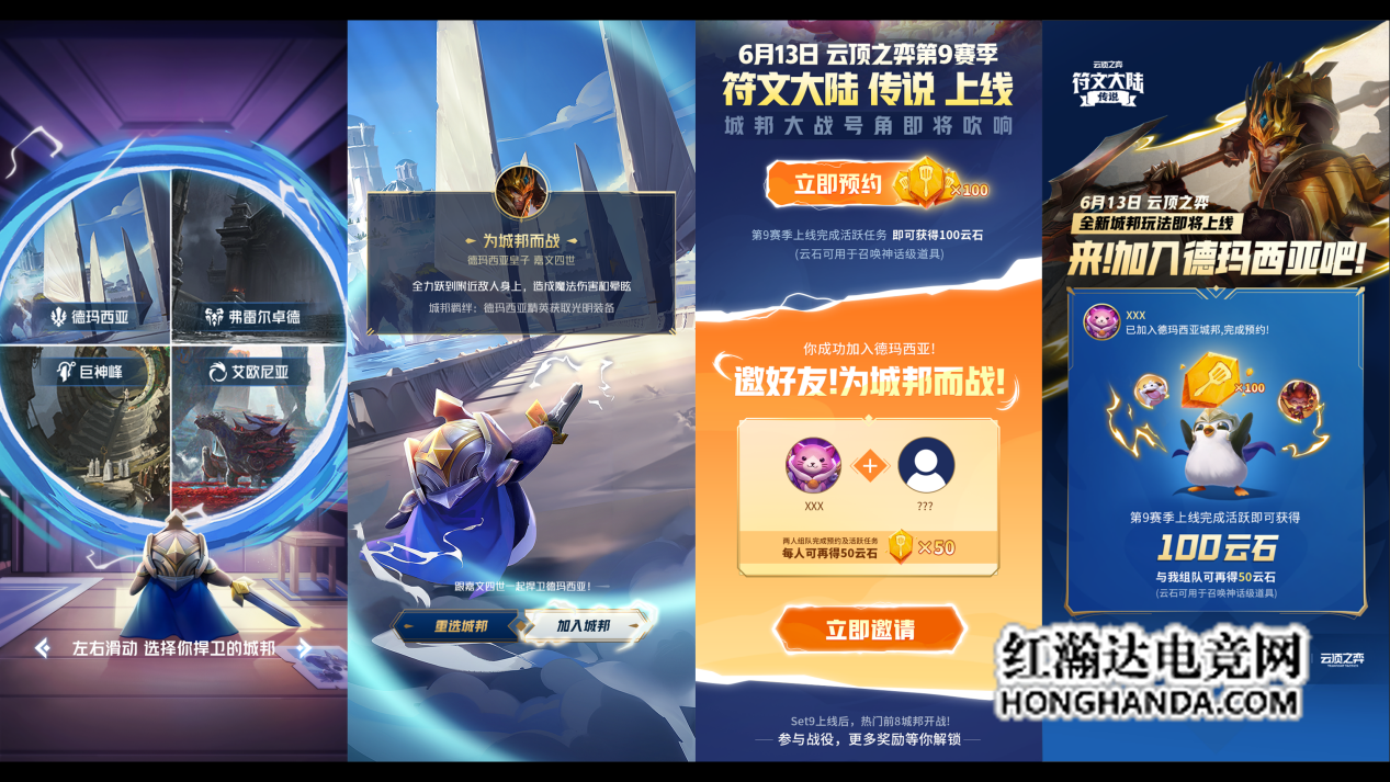 英雄联盟云顶之弈第9赛季《云顶之弈 符文大陆传说》正式开启预约了!熟悉的符文大陆,全新的升级玩法!多款城邦羁绊带你体验艾欧尼亚,诺克萨斯等不同地区的特色,更有英雄传说之力系统、地区传送门选秀、强化符文更新,更多人性化的品质改动将会为弈士们带来更好的体验。6月13日等你一战!