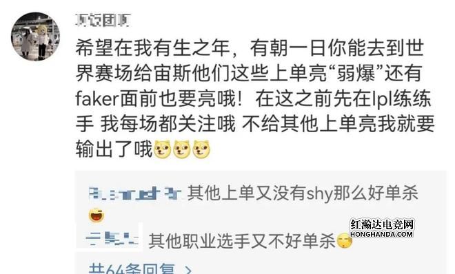 总之在粉丝眼里,单杀The Shy可以,没法喷,但如果单杀之后还亮一个表情的话,就有喷的角度了,但站在观众的视角,必须要接受的一个事实就是电子竞技胜者为王,实力不行,打不过,被单杀,被亮表情,这些都是选手们必须要承受的东西,OMG向来就喜欢亮类似的表情,粉丝这样喷人只能引起更大的反感,其他群体也会开喷The Shy。、