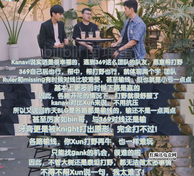 具体采访内容如下,sofm表示:kanavi遇到了369这么团队的队友,愿意帮打野,所以他很幸福,而且369不仅愿意帮打野,自己也玩得好,还可以帮中路,而下路大多数也都是赢线,所以kanavi很幸福,打得很舒服。