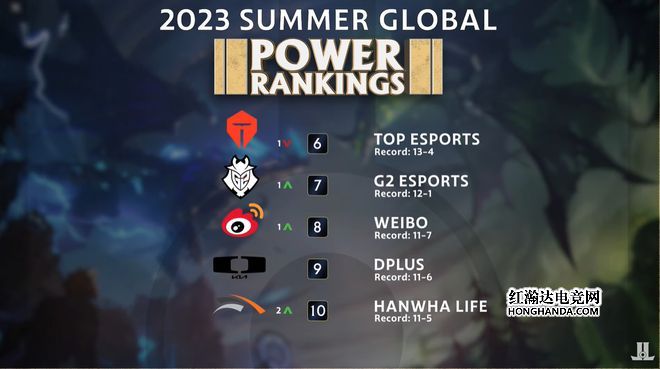 第八名是WBG,排名稍微上升了一位,原因应该是WBG在LPL夏季赛季后赛面对LNG的时候展现出了不错的实力,所以这次LNG实力上升,WBG也随之实力认可度上升。第九名是DK,排名和上周相比没有变化,第十名是HLE,排名上升了2位。