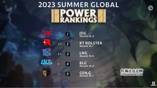 首先是前1-5名的战队,目前世界最强战队还是给到了JDG,这个排名已经保持很久了,看得出来外媒是非常看好JDG的,目前JDG实力最强也算是全球的共识,毕竟账面实力看起来很厉害,而且在MSI上也拿到了冠军,夏季赛现在也打进了决赛,如果JDG拿到夏季赛冠军,这个印象会更加深刻。