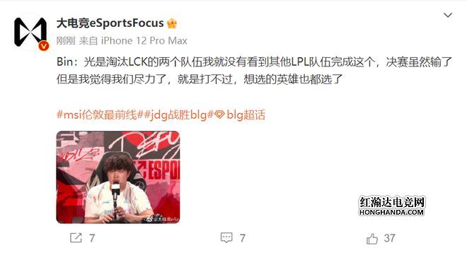 在赛后采访的时候,bin也承认技不如人,当然也认为BLG淘汰了两支LCK战队,已经做到了其他LPL战队做不到的事情了,只是决赛确实打不过,大家都尽力了。