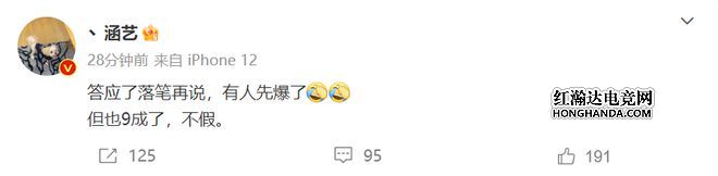 接着很多网友去询问前V5教练涵艺,因为他也经常爆料转会的消息。很快涵艺也做出了回应,他承认了这个爆料,表示:本来答应了别人等签了合同再爆料的,但是已经被其他人提前爆出来了,但是也不假,可能性有9成了。