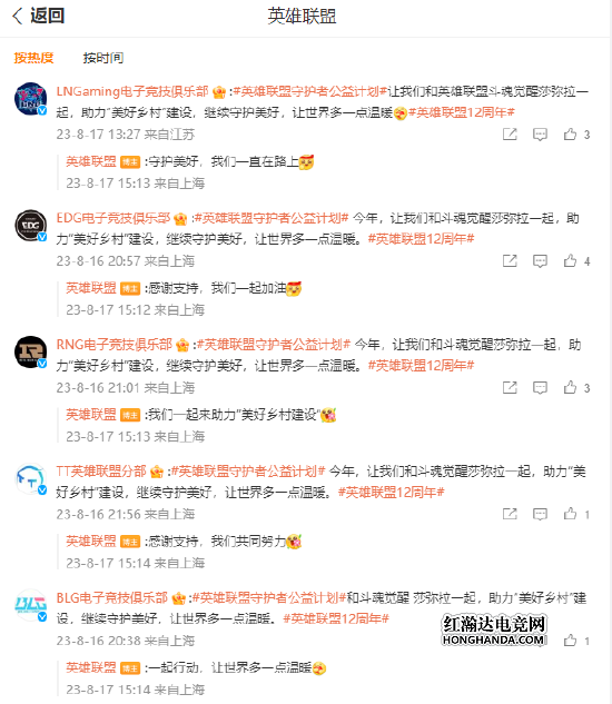 除了来自台前幕后的工作人员,一直奋战赛场的电竞俱乐部也参与了此次英雄联盟公益手册的转发当中,并激励了更多的粉丝和普通玩家参与其中——来自全国的热爱,将最初的涓涓细流汇聚成滔滔江水,一如《英雄联盟》公益事业14年来发展的缩影。