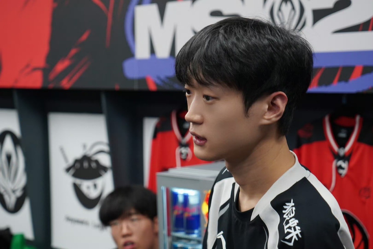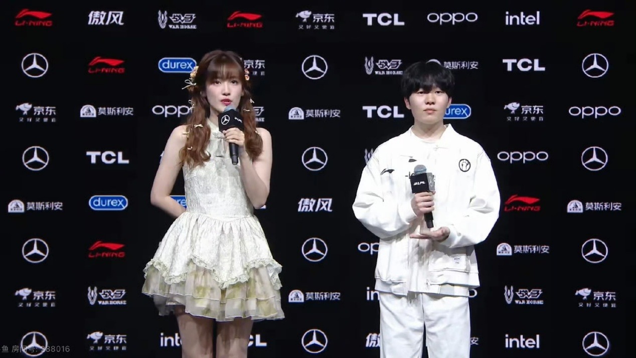 他首先对于上场的失利,说道:上场打TES,我们优势的局没拿下来十分可惜,这场比赛也不能说打得很好吧,WE今天打得不错,可能我们团战打得更好所以赢了。接着他也对Theshy说道:他一直说自己两件套无敌,然后我也对岩雀自信,所以没什么沟通,都很自信。最后对于目标,他说道:个人是比较想进决赛的吧,大家的目标肯定是一样的,奔着最好的成绩去,一起加油。