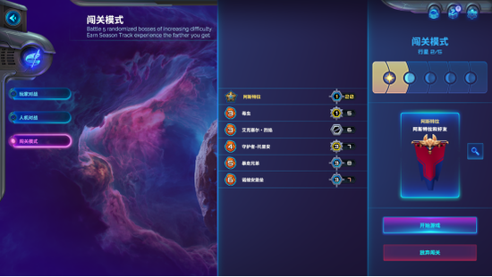 如果你一时之间并不想去天梯和其他玩家厮杀个你死我活,那么你也可以试试选项中的闯关模式。