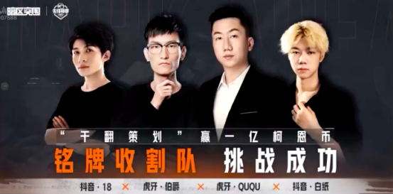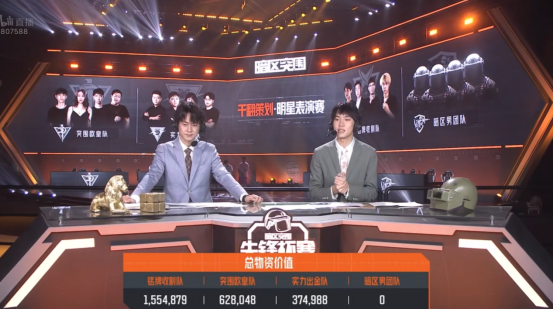 最终,主播队中的铭牌收割队,不仅成功干翻策划,让策划队以两场携带总物资价值0的“耻辱”战绩结束游戏,还以155W+的奢华分数赢下了这场巅峰对决!