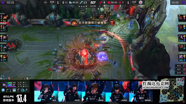手握三龙Buff的EDG彻底掌握话语权,通过四分一分推同时推进中下两路高地以后发起总攻想要一波结束比赛,阿卡丽TP绕后但是已经被视野发现,EDG不等阿卡丽到位直接大树开团,通过伤害压制将LGD按进了泉水之内,最终击溃LGD拿下第一局比赛的胜利,1-0先声夺人!