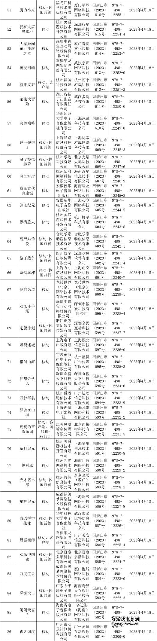 4 月 20 日,国家新闻出版署在官网公布了新一轮国产游戏过审版号,这是2023年的第四批版号。