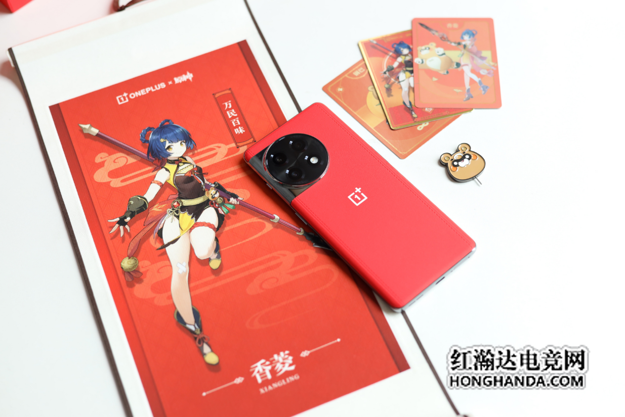 除了主角一加Ace2熔岩红外,一加Ace2原神定制礼盒更是由外而内做了深度定制,定制礼盒以传统“食盒”为原型,这与璃月的名厨香菱再次默契,食盒由大面积饱满的红色覆盖,点缀以烫金工艺图案,质感瞬间外露。俨然是一份极具收藏价值的典藏级定制礼盒。
