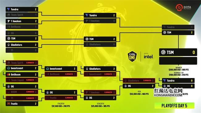 北京时间5月22日凌晨,斯德哥尔摩Major淘汰赛第五天比赛战罢。今天的比赛中OG战队越战越勇,先后淘汰了TA跟GG两支战队闯入败者组决赛。另一边在人们都对北美DOTA不抱太大希望的时候,TSM挺身而出2-0击败Tundra杀入总决赛,为北美DOTA保底拿到了一个亚军。具体对阵情况如下: