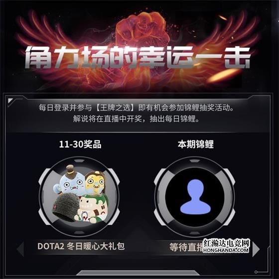 每日登陆并参与【王牌之选】活动,完成投票,即有机会登上直播,由DPC官方解说认证,成为每日锦鲤,获得精美电竞外设、DOTA2专属周边等好礼。
