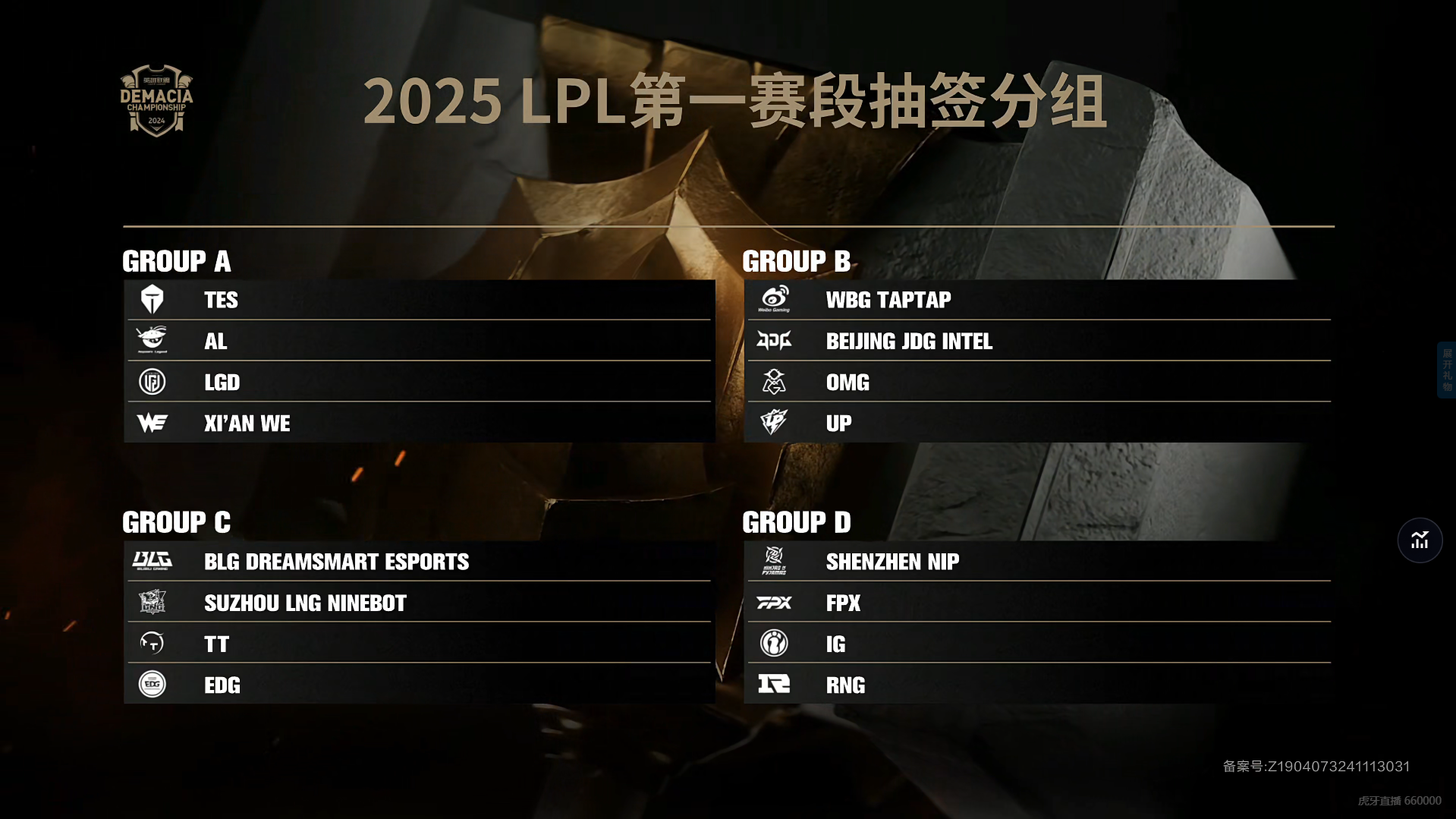 在比赛结束之后,对2025年LPL第一赛段进行了抽签分组。