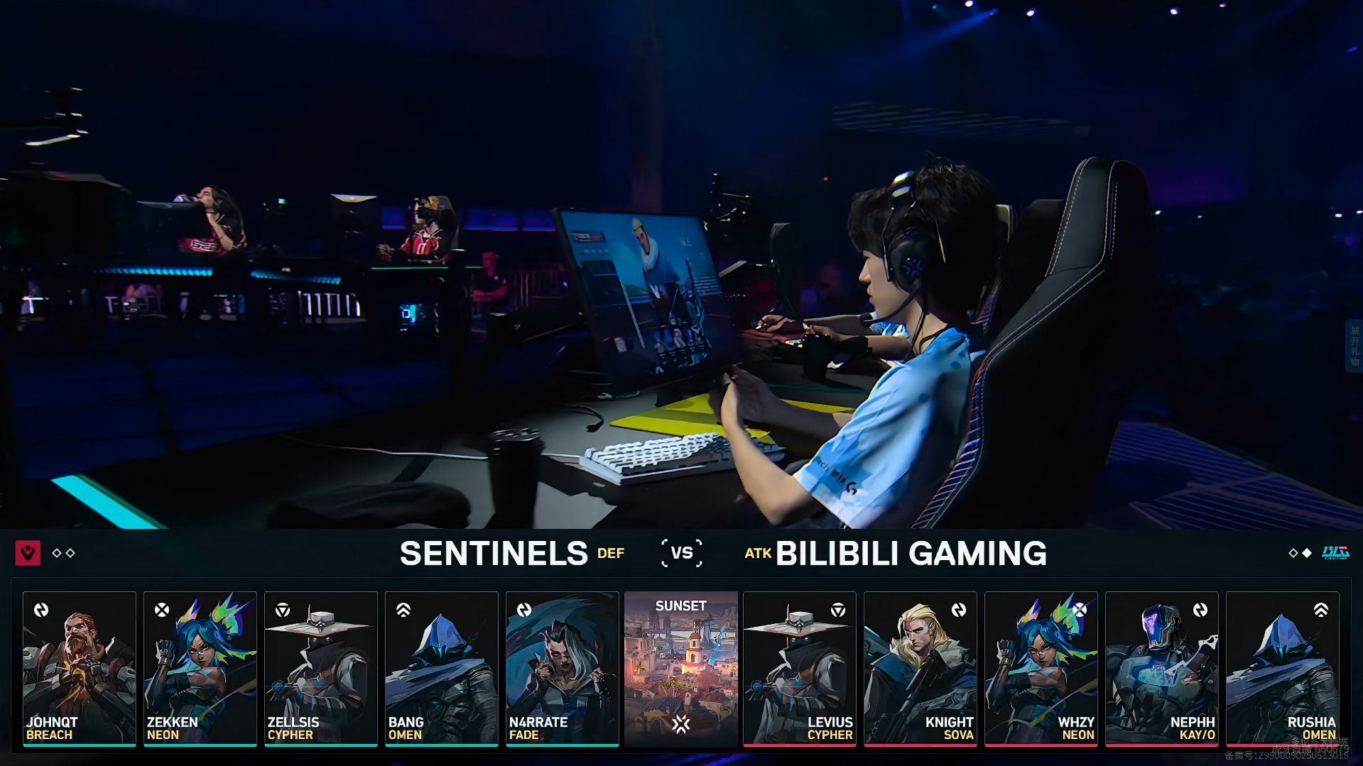 上半场BLG赢下手枪局,SEN从奖励局开始连拿3分,第5回合在A点更是打出完美团灭,BLG用出首个暂停,第6回合Zellsis零的拌线让BLG的静音进攻无效,第7回合whzy霓虹开大快攻A点,一瞬之间whzy霓虹就将SEN在A点的防守全部打掉。第9回合BLG继续提速A点,rushia一个灵性烟拿到双杀。上半场SEN 7-5 BLG。