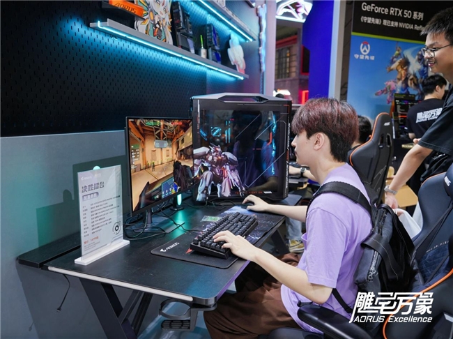 喜爱电竞的其他玩家同样能在这个区域找到自己的快乐。技嘉AORUS GeForce RTX5060 Ti ELITE 16G小雕显卡和技嘉Z890M A ELITE WIFI7小雕主板打造的高性能主机上体验游戏大作,细腻画质与流畅操作都让游戏爱好者们流连忘返。