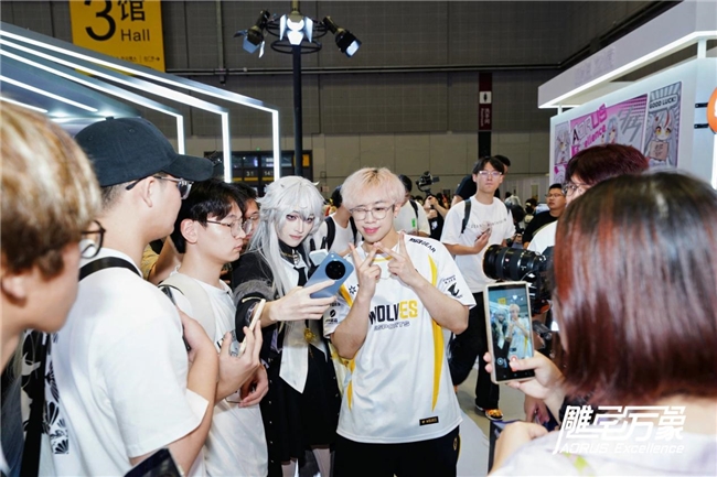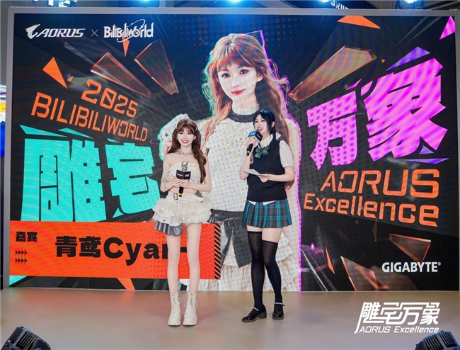 人气偶像空降展台,台上台下激情互动,硬核科技与娱乐盛宴完美融合。B站舞蹈区知名UP主青鸢Cyan、狼队《无畏契约》电竞选手留一手和小肥、前TEC.Blackovo、B站游戏博主中国Boy、音乐UP主YOUNG13DBABY、电竞游戏博主,技嘉AORUS星推官CSGO茄子、邪神Karasu空降展台,粉丝们热情高涨,欢呼声此起彼伏。偶像签名、合影,互动环节精彩纷呈,硬核科技与娱乐元素交相辉映,共同谱写电竞文化的璀璨乐章。全民狂欢也在此刻具象化,二次元文化的澎湃热血也在此刻完全迸发。
