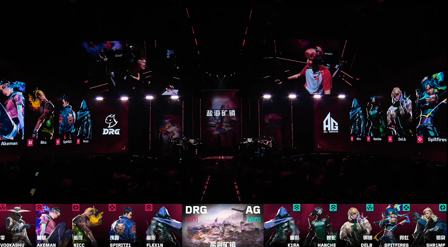进入下半场手枪局Nicc颗颗头部命中拿到四杀,随后第14回合vo0kashu防守三杀赢下。第15回合AG在中路打掉两个后直接进A守包赢下。AG连下两分,第17回合AG在A点混烟出,被Flex1n连打两个,DRG回防A点让AG无法下包拿到赛点。第20回合DRG在B点变奏前压打掉两个,随后Nicc在B店三杀守住,DRG 13-7赢下盐海矿镇。