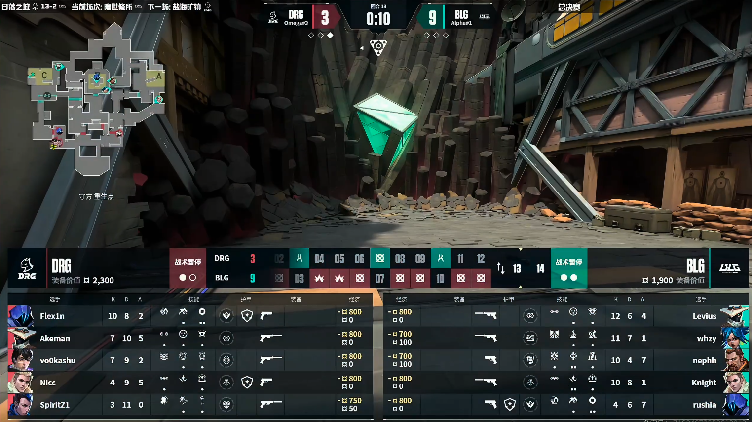 下半场DRG赢下手枪局后拿到赛点,第15回合BLG来到长枪局,DRG夹击B点,直接一波带走BLG,DRG 13-2赢下图一的胜利。