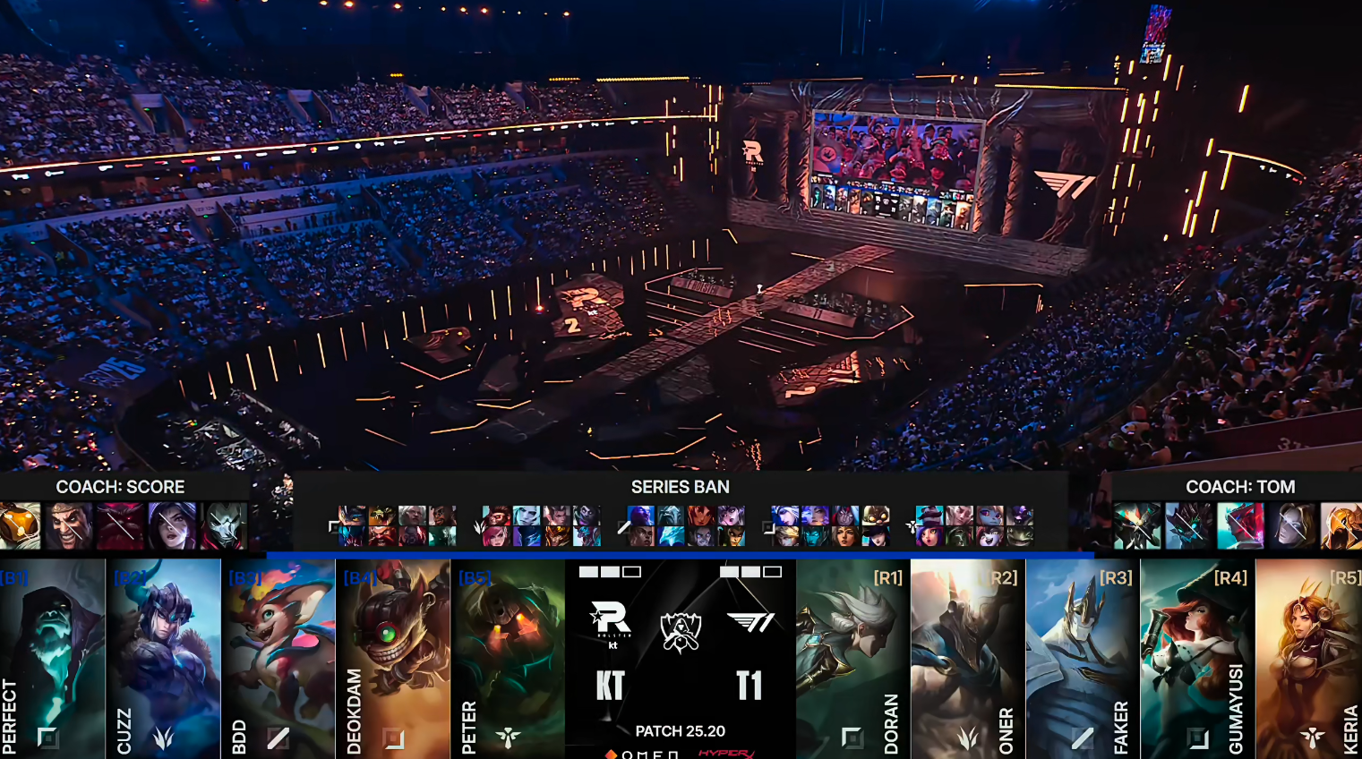 2025英雄联盟全球总决赛冠亚军决赛T1 3-2击败KT,T1夺得S15全球总决赛冠军。