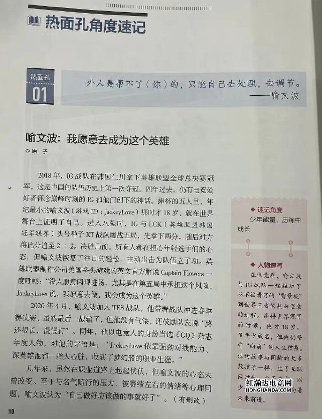 最近有记者曝出职业选手Jackeylove喻文波登上了高中作文素材,并且还做了人物背景故事~