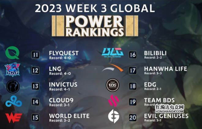 而第10-20名的队伍中,LPL赛区的战队居多,分别是第12名的LNG,第13名的IG,第15名的WE,第16名的BLG以及第18名的EDG。前20名中一共有8支LPL战队。