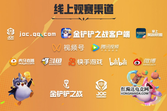 11月28日-12月4日JOC举办期间,各位弈士可以通过JOC赛事官网、《金铲铲之战》游戏客户端、掌上英雄联盟、腾讯视频、虎牙直播、斗鱼直播、快手游戏、bilibili直播等多个线上渠道观看比赛。