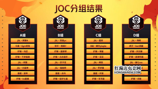 本届JOC共分为小组赛、半决赛、决赛三个赛段。32名选手已根据抽签结果分为4组,即将进入小组赛阶段。小组赛采用5局积分赛制,每组的8位选手将以5局比赛总积分进行排名,争夺4个晋级名额。