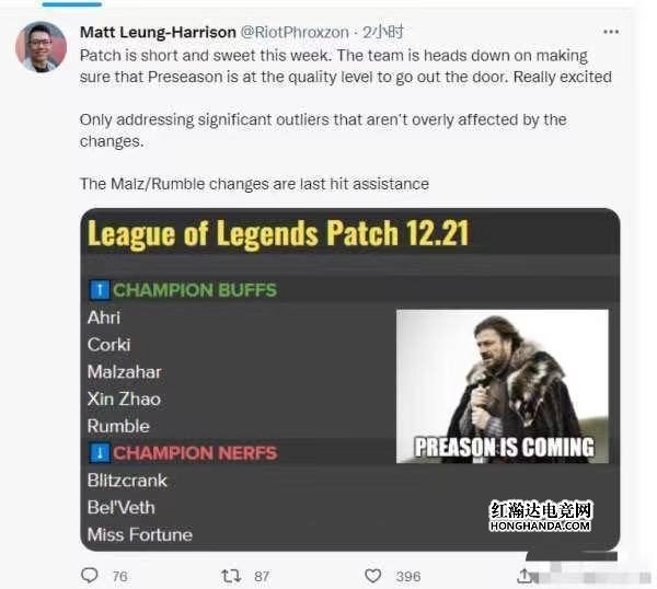 Riot Phroxzon:“下次的版本变动会非常短小,但是甜美。平衡团队这样做的原因是为了让季前赛的内容保质保量。非常的令人兴奋。