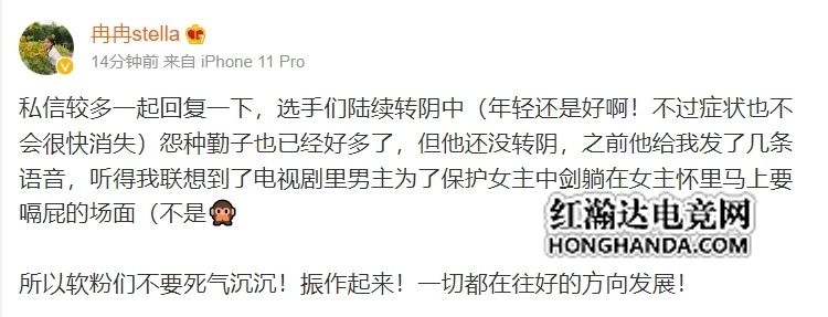Tabe妻子发文说道:私信比较多一起回复一下,选手们陆续转阴中(年轻还是好啊!不过症状也不会很快消失)冤种勤子也已经好多了,但他还没转阴,之前他给我发了几条语音,听得我联想到了电视剧里男主为了保护女主中剑躺在女主怀里马上要嗝屁的场面。所以大家不要死气沉沉!振作起来!一切都在往好的方向发展!