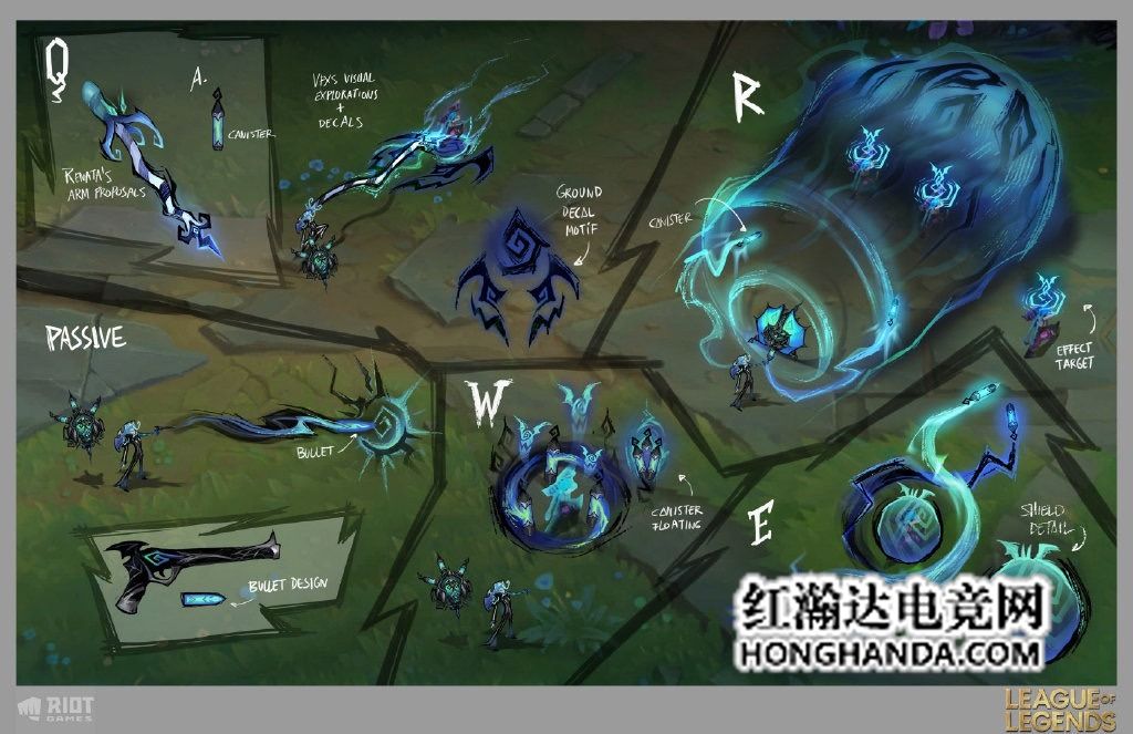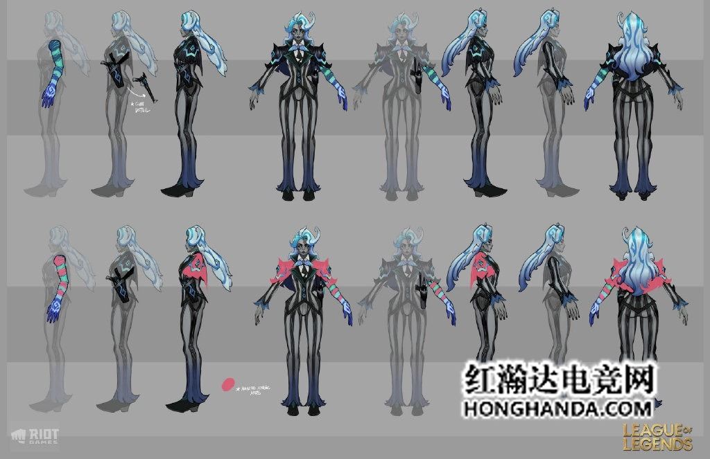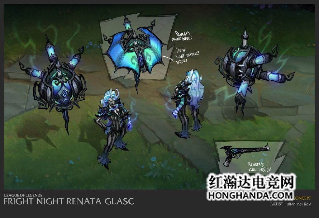 英雄联盟哥特奇妙夜系列皮肤设计初稿发布,资深概念设计师Julian del Rey在A站发布了烈娜塔概念设计师稿,包括早期探索,最终定稿、回城特效、技能特效。